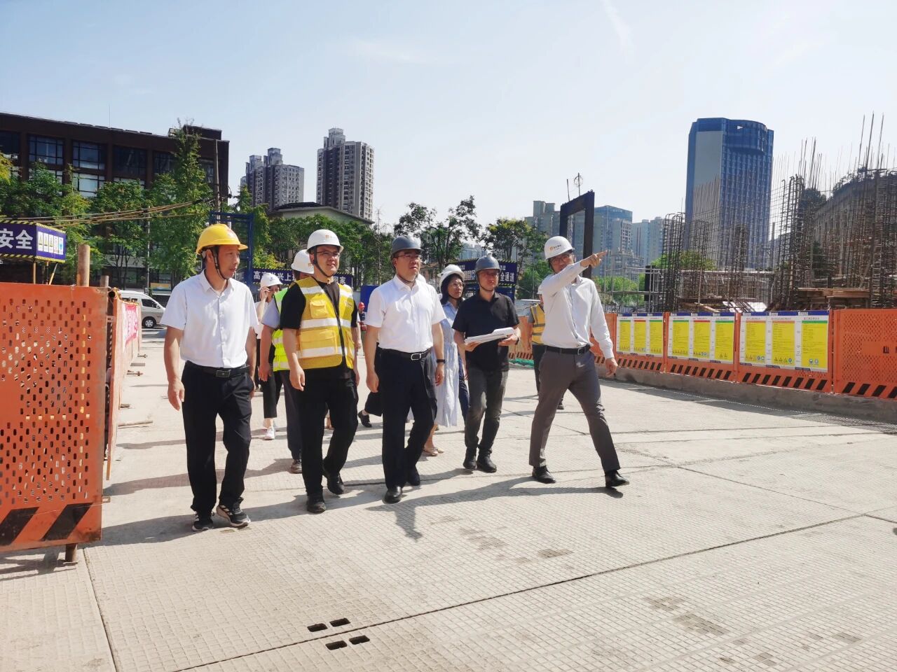 9月17日上午,上海市虹口區委書記李謙率隊蒞臨集團承建的華潤瑞府項目施工現場視察指導。集團總裁助理李國明、項目負責人李陽春予以熱情接待并全程陪同。抵達項目工地,李謙書記一行直奔施工現場,深入一線了解工程施工情況,仔細詢問項目工程概況、施工進度、施工難點、項目推進存在的問題等事宜。集團領導、項目負責人等逐一進行匯